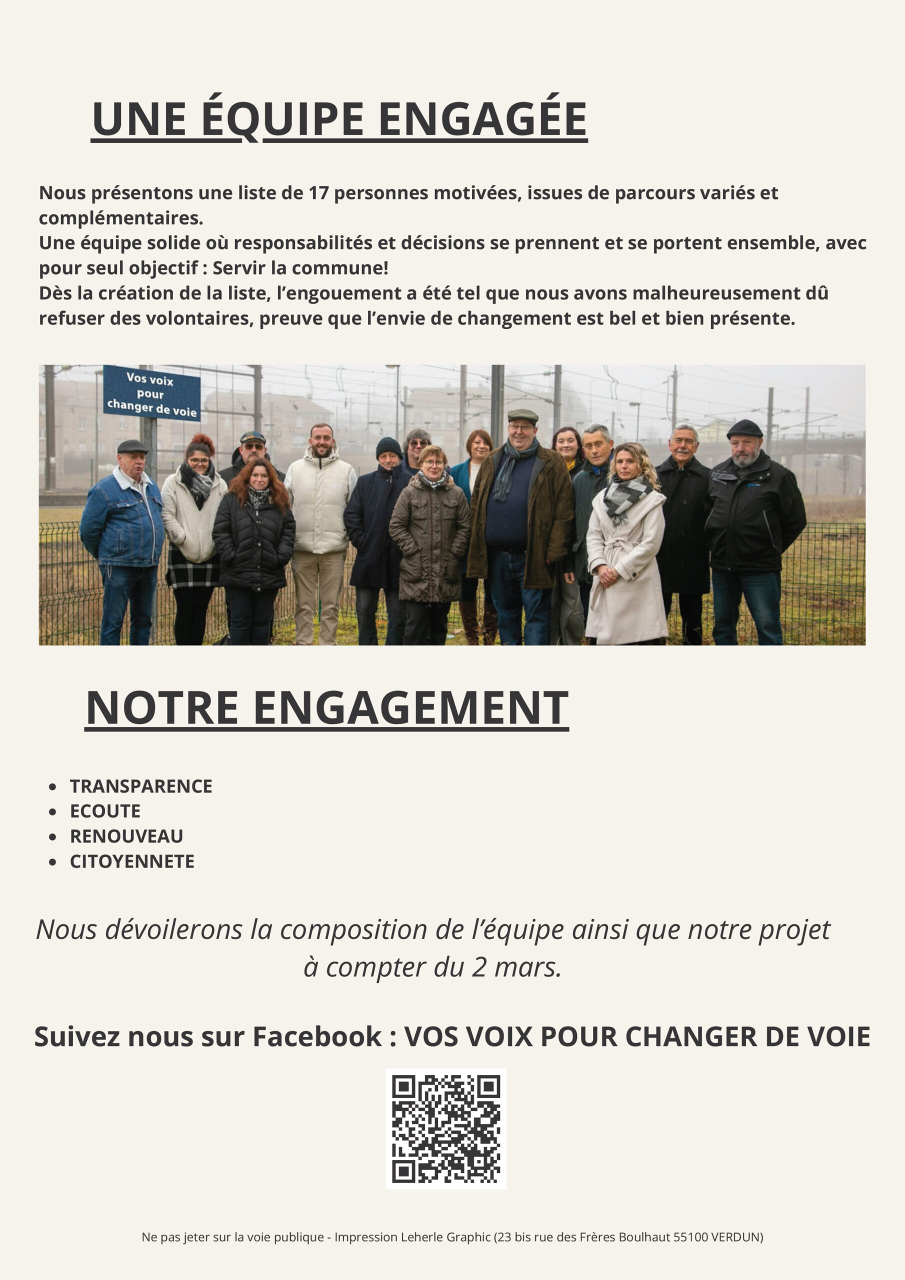 Actualités Dépot de liste réalisé et validé par la sous préfecture de Verdun Tract : Vos Voix pour changer de Voie